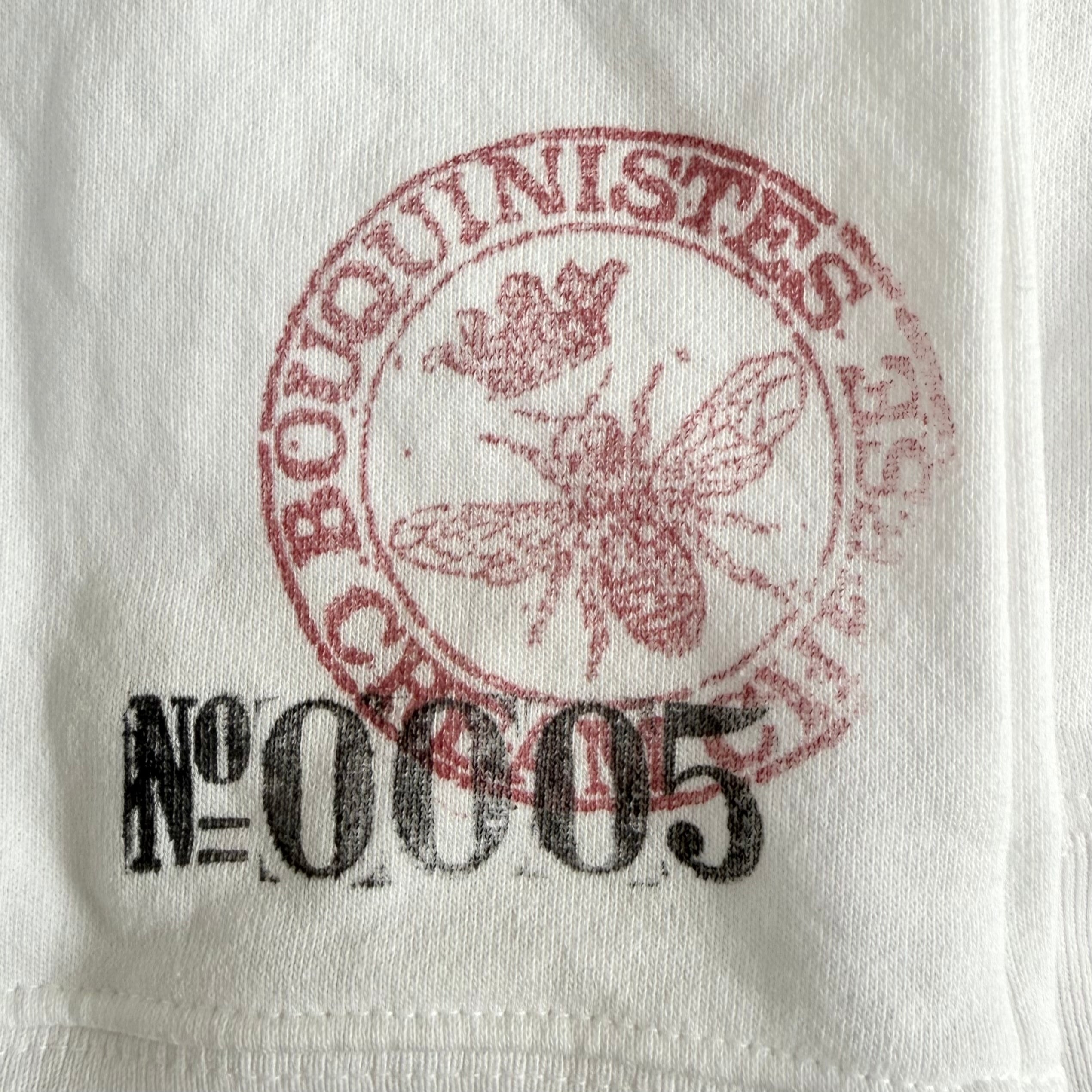 後ろ見頃右下部分にシリアルNoとBOUQUNISTES CREAMCHEESEの承認印が油性インクで押印。