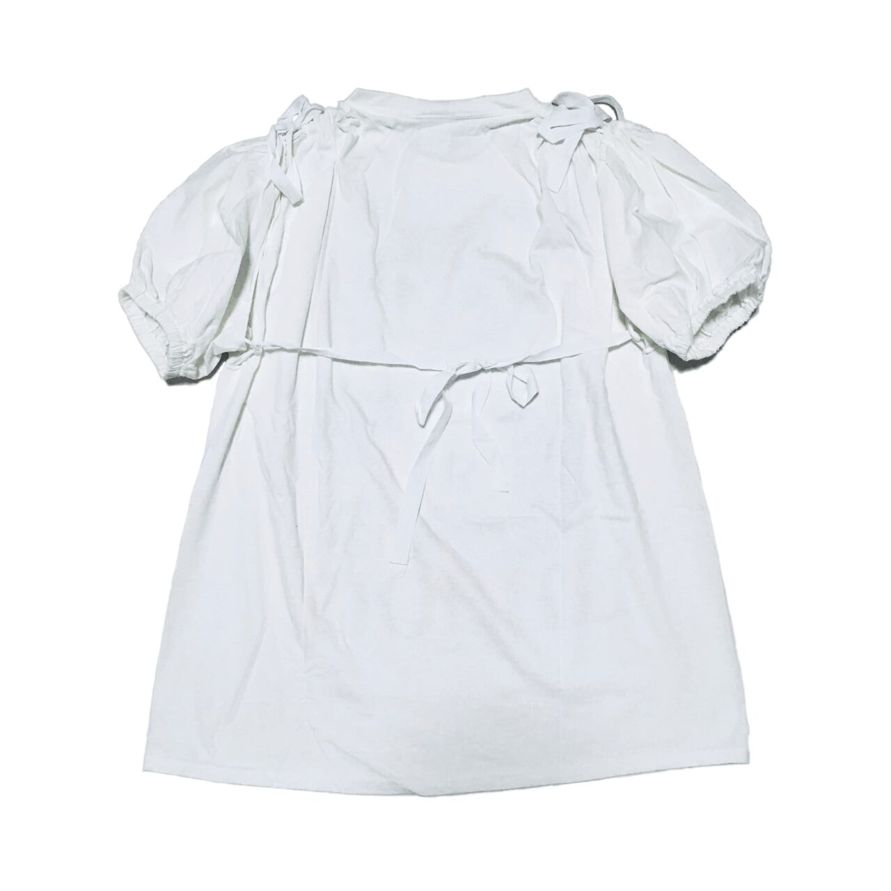 シャツ地素材のパフスリーブ袖は、本体肩部分の綾テープで装着・取り外し可能。