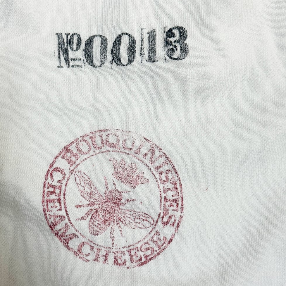 後ろ見頃にシリアルNoとBOUQUNISTES CREAMCHEESEの承認印が油性インクで押印。