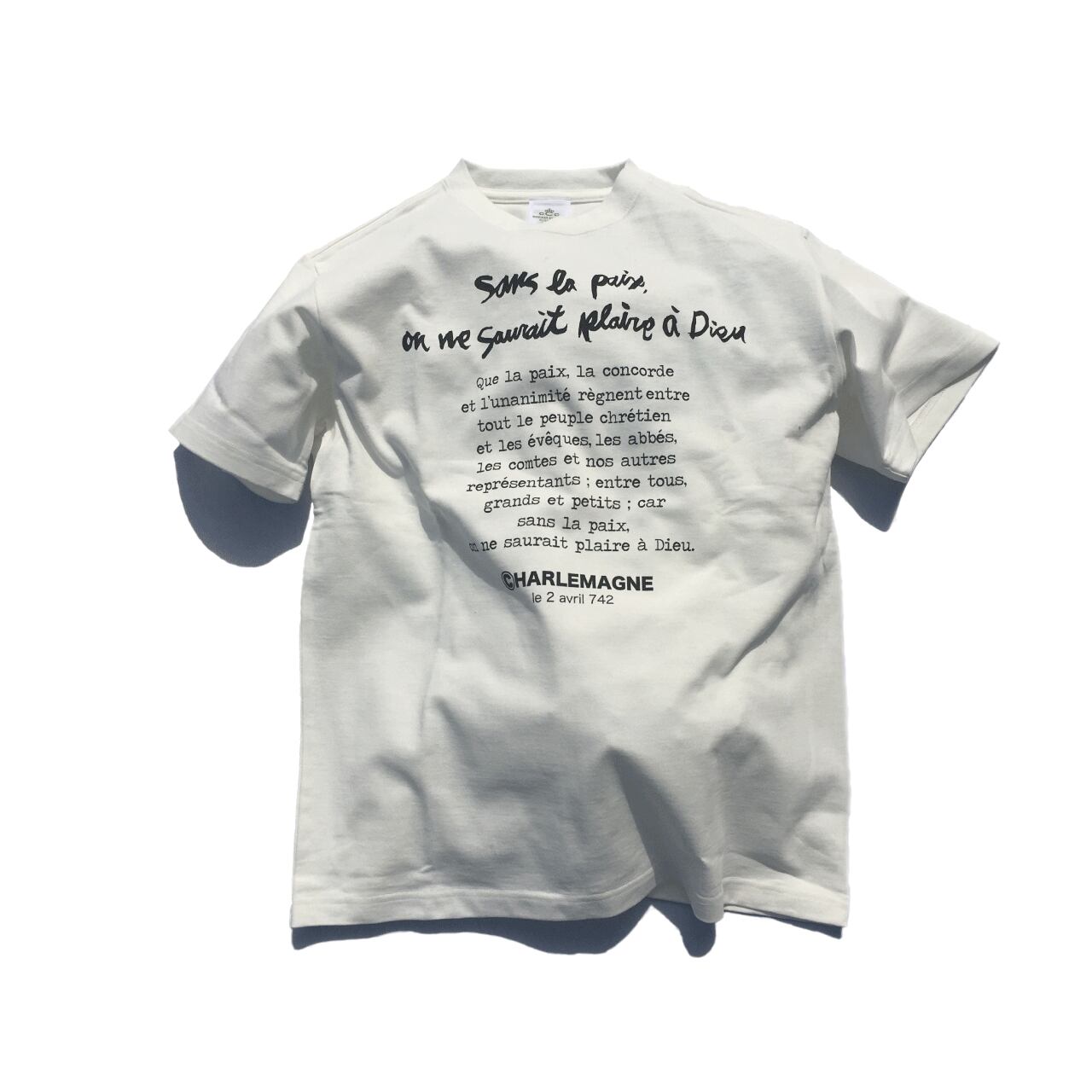 たちの間で。(富や位の)大小を問わず、私たちの間で。 というのも平和なしで、神を喜ばせることは出来ないであろうから。」 の言葉を前身頃にプリント。 後ろ身頃には彼の姿のステンドグラスをプリント。